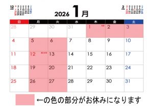 12月、1月のお休み