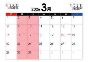 2月、3月のお休み